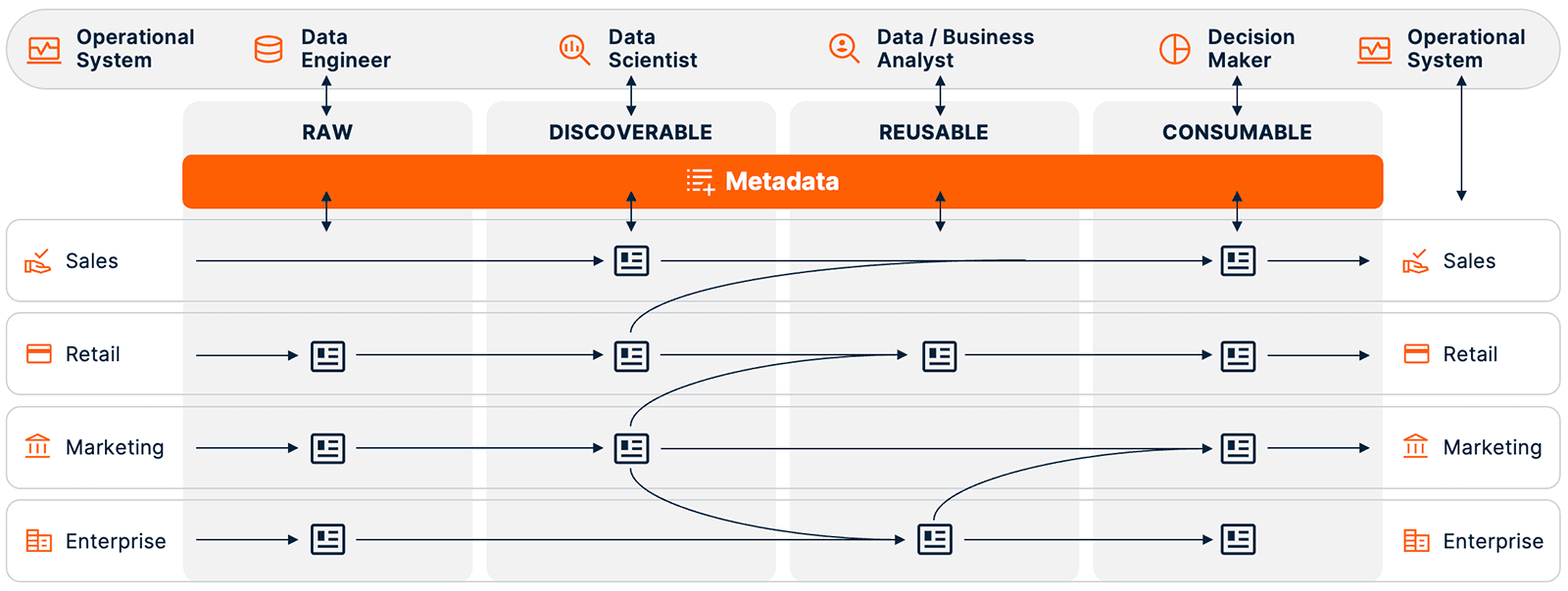 • Reusable and governed data is essential for data and business analysts, integrating core business concepts and ensuring consistency and efficiency in data utilization across domains